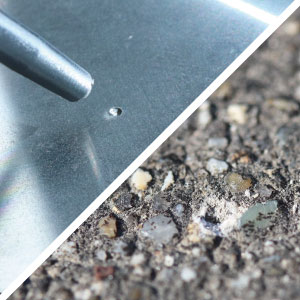 施工ポイントに目打ちしマーキング コンクリートだけでなく、鉄にも目打ち可能