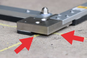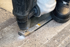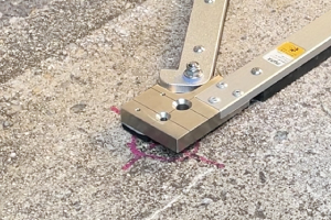 ①測量鋲を打ちたい場所(アスファルトやコンクリート)に点や線をケガキます。