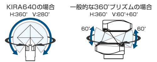 KIRA640では、天面にもプリズムを配置することでロストのリスクを大幅に低減。