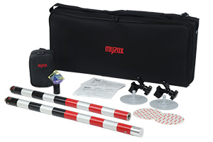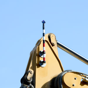 建設機械にプリズムを取り付ける際に便利なベース、クランプ、ポールを
