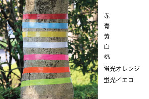 カラフルな標識用ビニールテープ。植林、樹木調査などの領域表示の目印に。 ※粘着性ではありません。