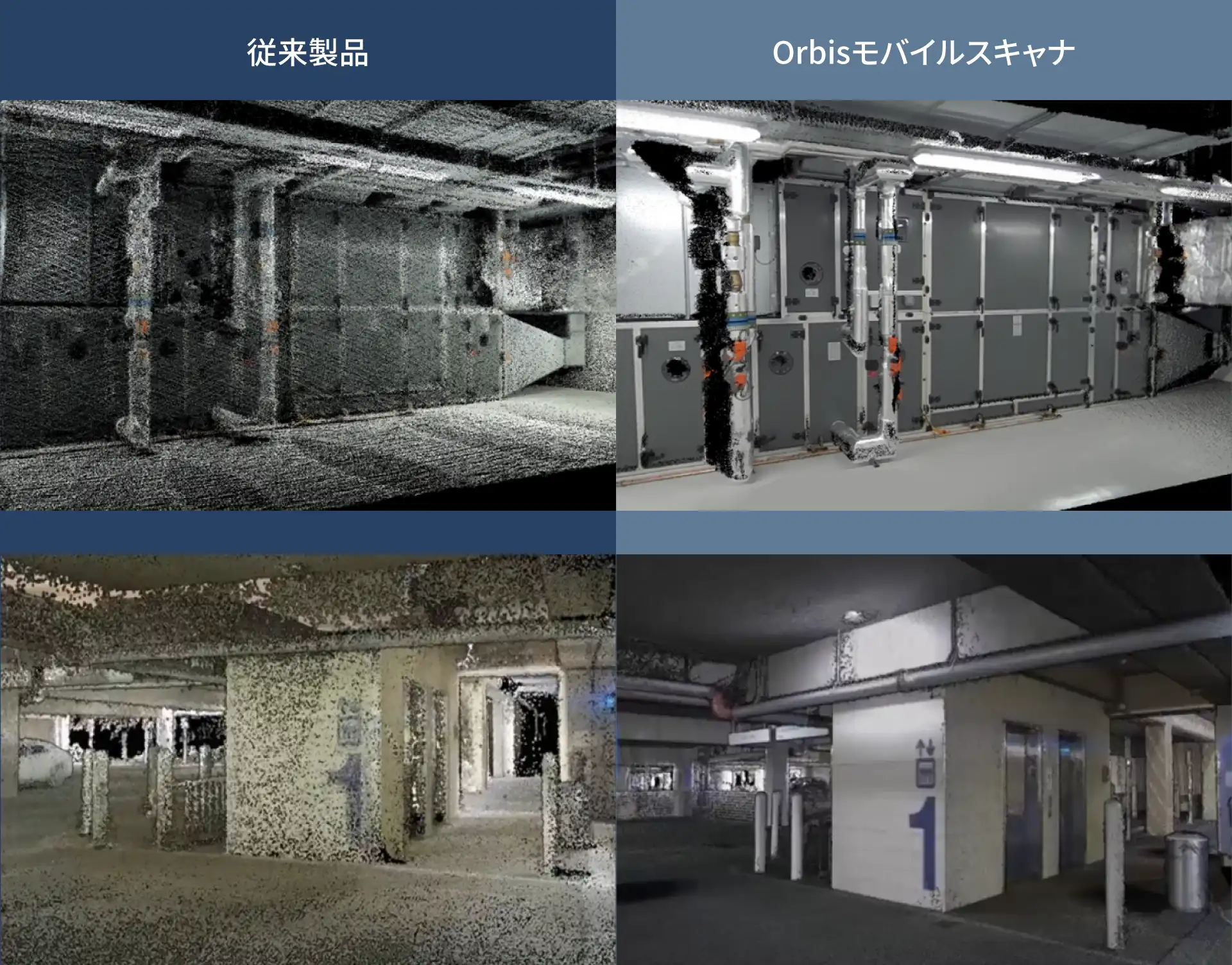 FLASHスキャンはOrbis Premium独自の機能で、Orbis Premiumを手持ちまたは一脚などで固定した状態で計測することで、夜間でも地上レーザーのような高精度な点群データを取得することができます。