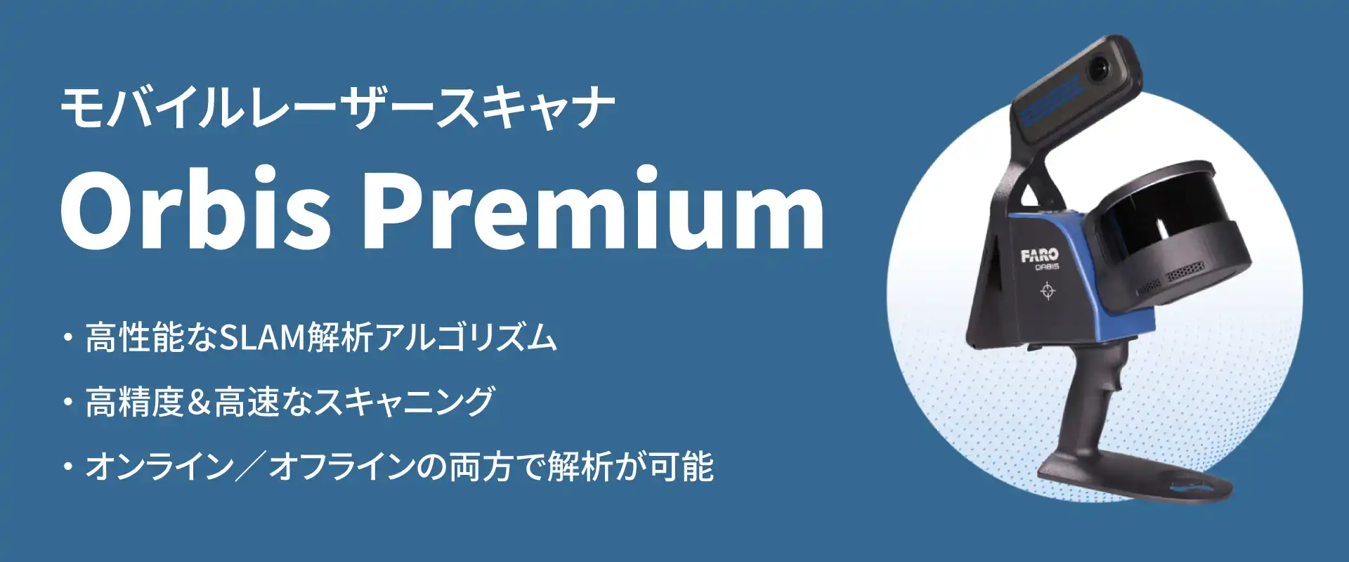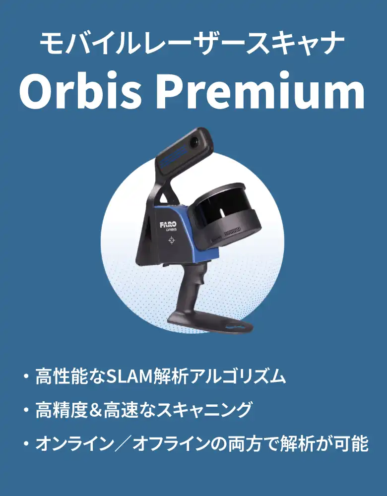Orbis Premiumは、高性能レーザースキャナと最大7200万画素の高解像度360度カメラを搭載し、3Dデータとパノラマ画像の両方を取得可能です。さらに、スキャナは防塵・防滴性能IP54で、厳しい環境でも優れたパフォーマンスを発揮する堅牢性を備えています。
