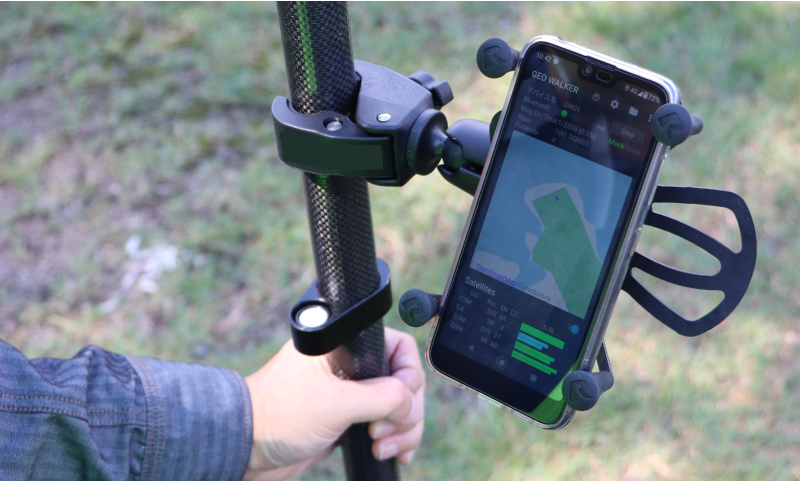 「GEO WALKER」に専用のコントローラー端末は不要です。お手持ちのスマートフォン※に無料のアプリを入れれば、ワイヤレスで誰でも簡単に計測を行えます。